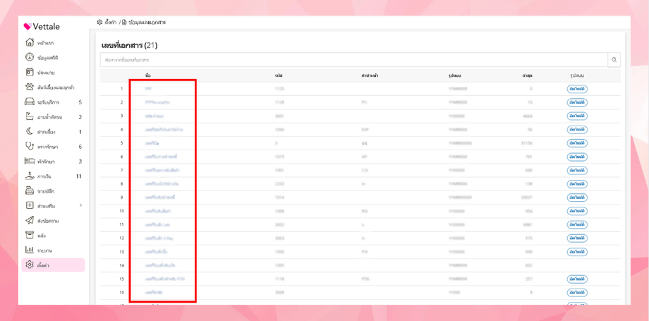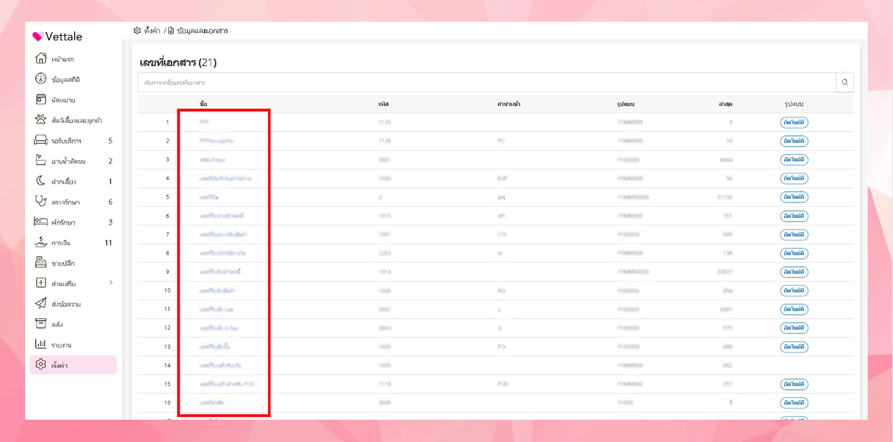 - เมนูตั้งค่า > เลขที่เอกสาร > รหัสเอกสาร