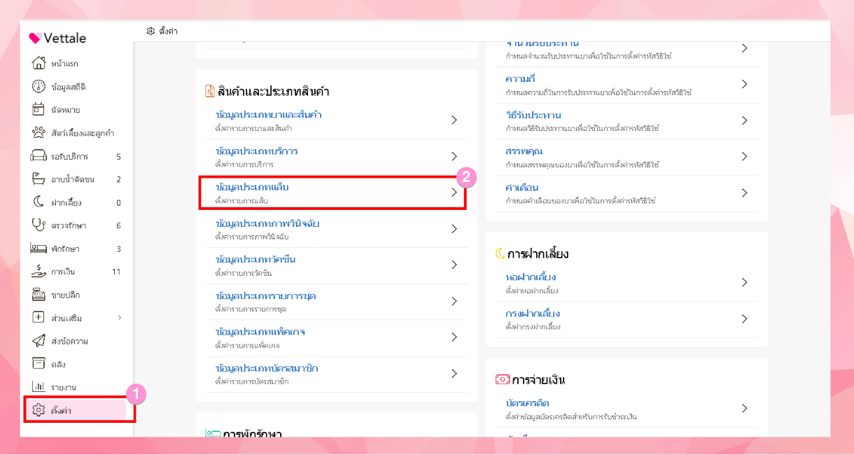 ในการตั้งค่าข้อมูลประเภทแล็บ ทำได้โดยการไปที่เมนูตั้งค่า > ข้อมูลประเภทแล็บ