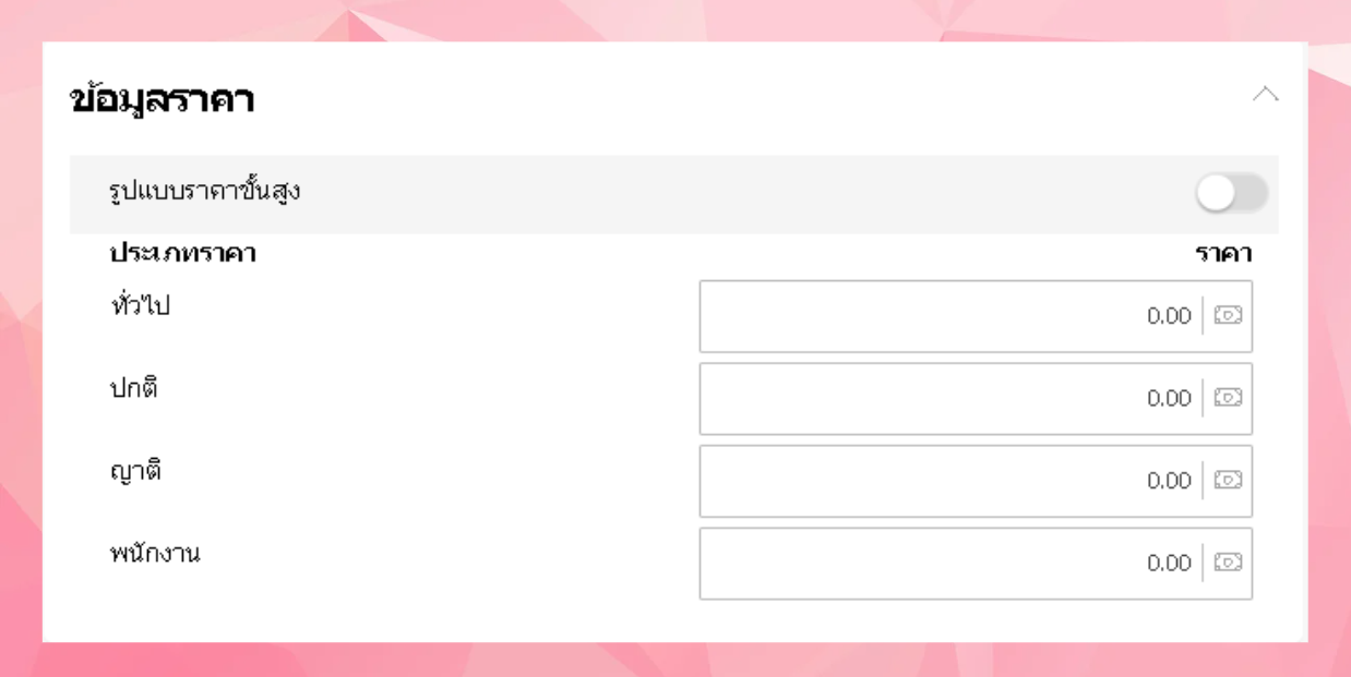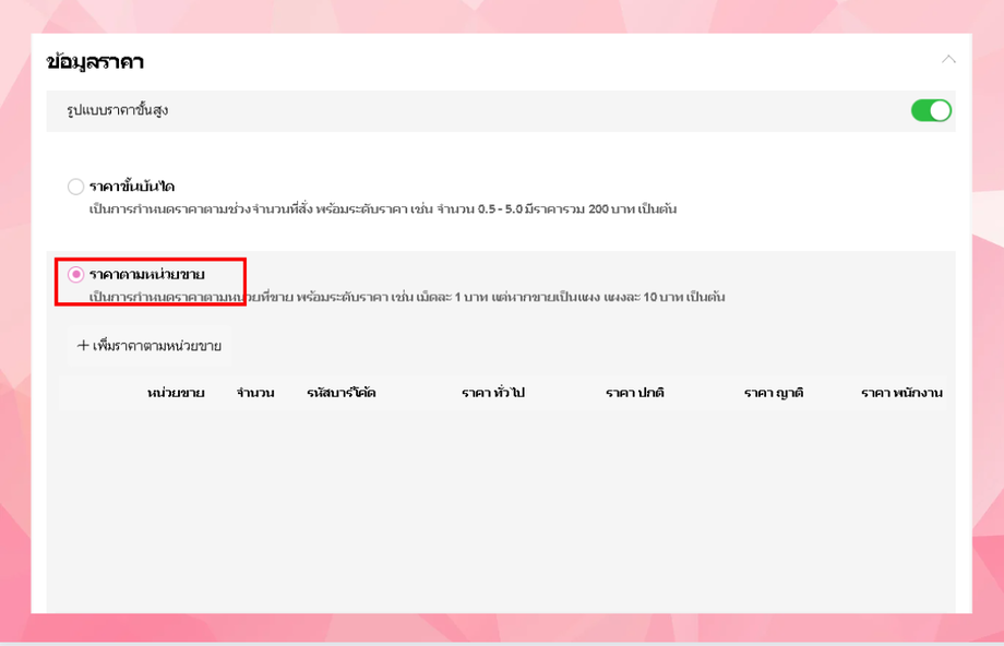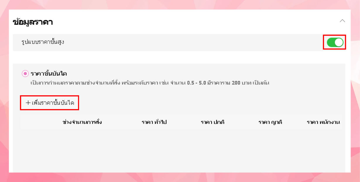 - สามารถตั้งราคาขั้นสูงได้โดยเปิด รูปแบบราคาขั้นสูง