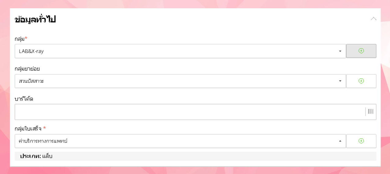 1.กลุ่ม หรือ ประเภทแล็บ - เช่น lab & X-ray