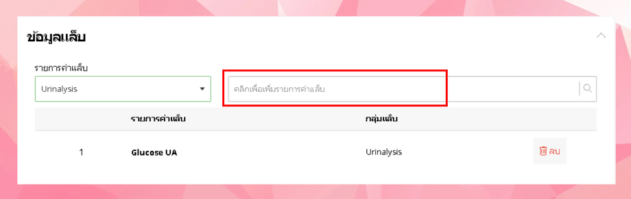 การเพิ่มข้อมูลแล็บ