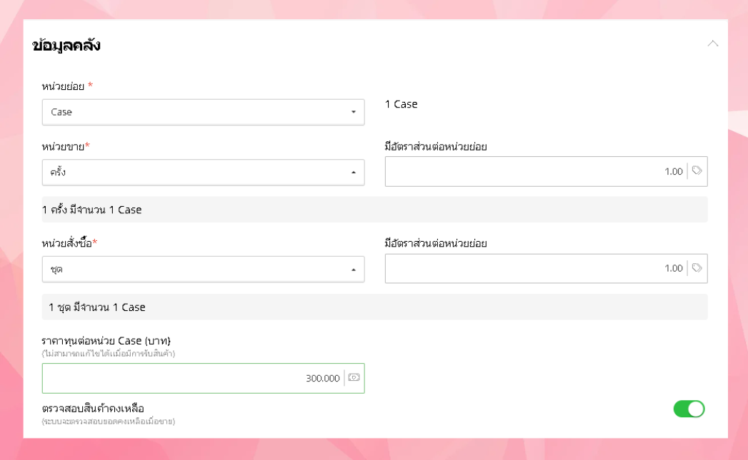 3.หน่วยสั่งซื้อ - เช่น ชุดเครื่องมือ และกำหนดอัตราส่วนต่อหน่วยย่อย