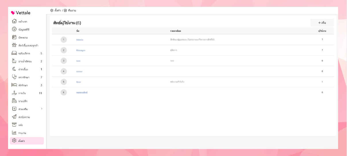 ระบบจะแสดงหน้าของสิทธิ์ผู้ใช้งาน