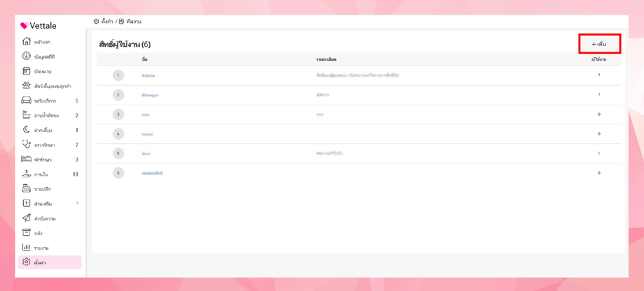 เมื่อเข้าสู่หน้าสิทธิ์ผู้ใช้งานคลิกปุ่ม "เพิ่ม"