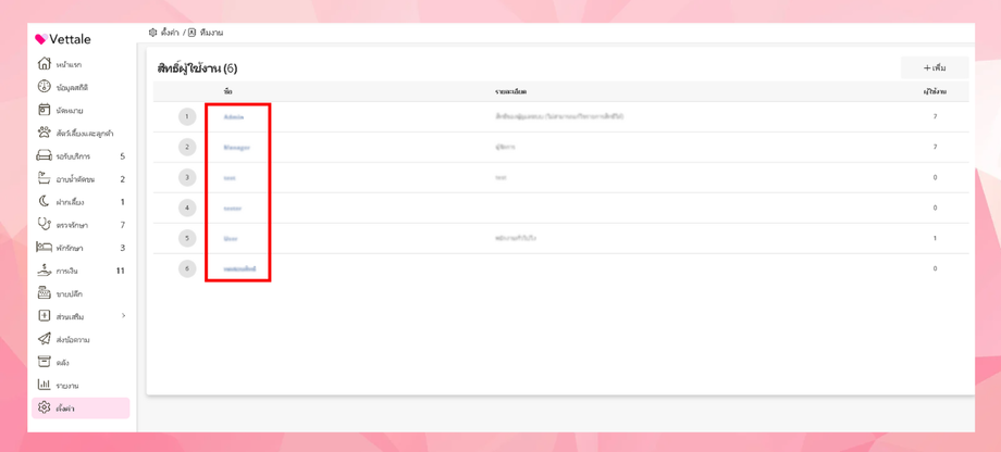 หมายเหตุ : สิทธิ์Admin จะไม่สามารถแก้ไขได้