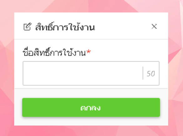ระบบจะแสดงหน้าต่างในการเพิ่มชื่อสิทธิ์การใช้งาน เมื่อกรอกแล้วคลิกปุ่ม "ตกลง"
