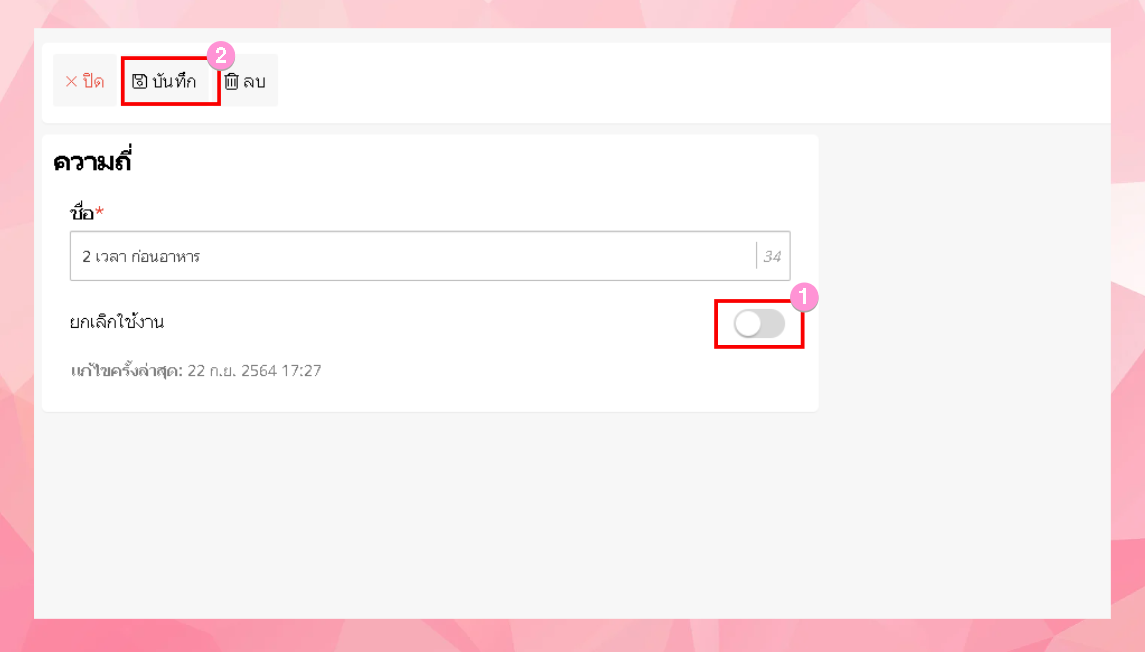 ผู้ใช้งานสามารถเลือกเปิดปิดการยกเลิกการใช้งานได้ (หากยกเลิกแล้วระบบจะไม่ใช้งานข้อมูลที่ยกเลิกไป)