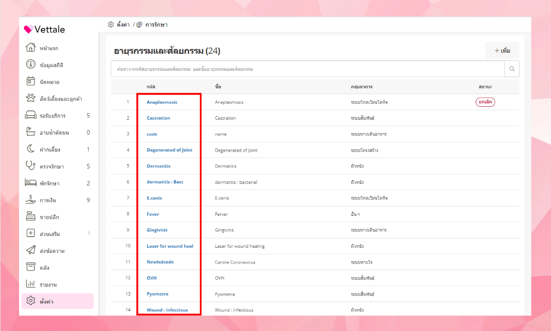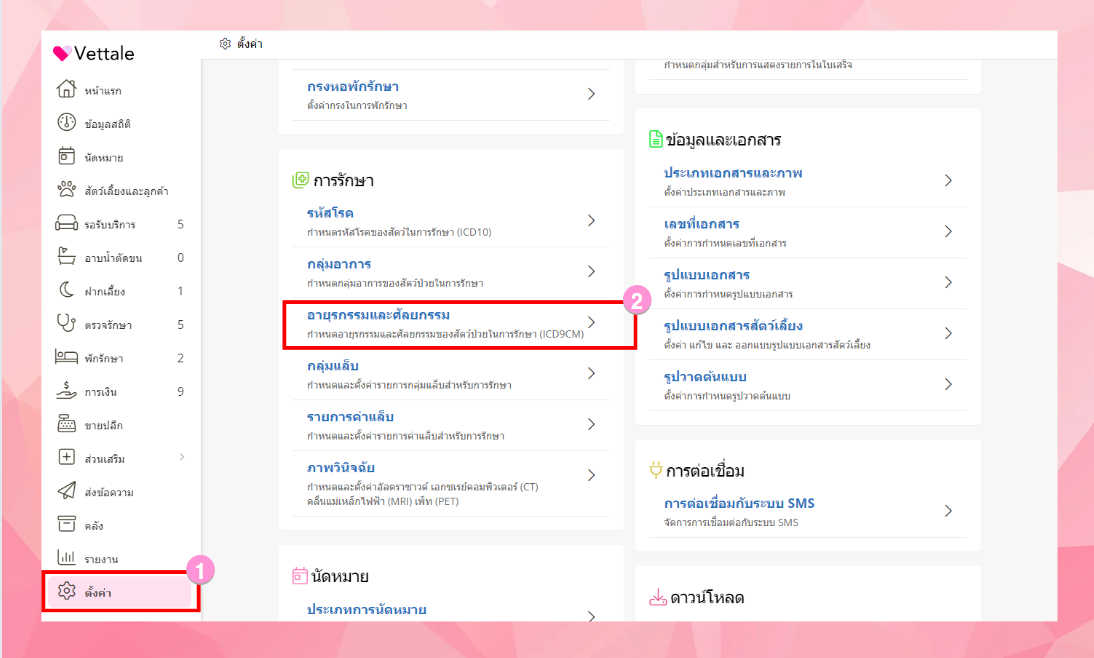 ไปที่ตั้งค่า > เมนูการรักษา > อายุรกรรมและศัลยกรรม