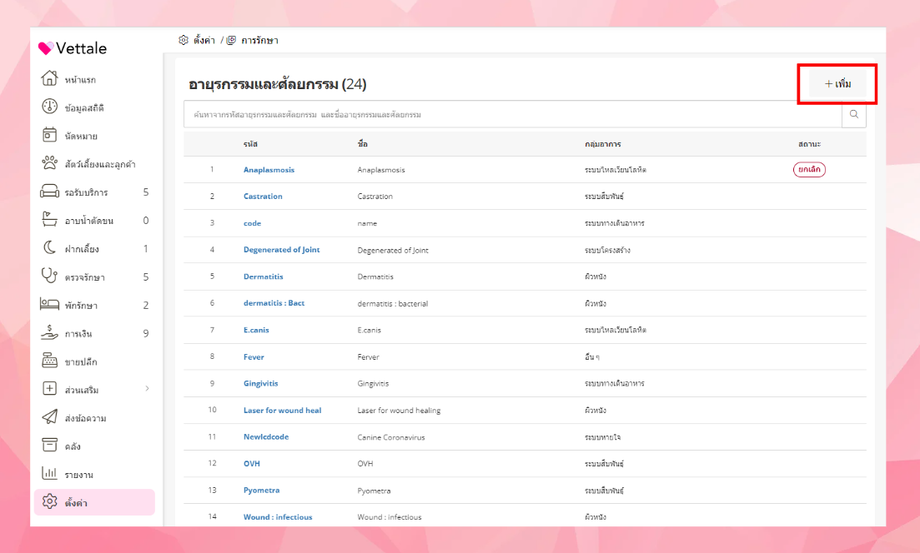 คลิกปุ่ม "เพิ่ม" เพื่อเพิ่มอายุรกรรมและศัลยกรรม
