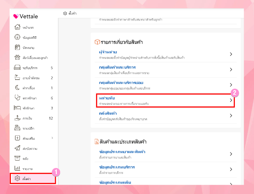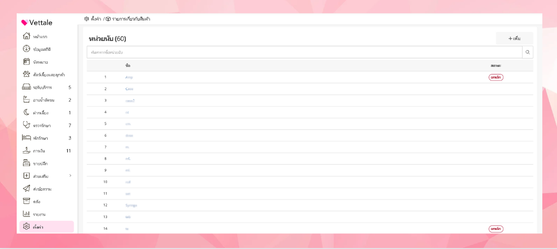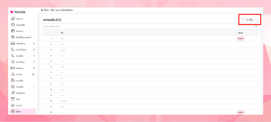 หากผู้ใช้งานต้องการตั้งค่าหน่วยนับ ทำได้โดยการไปที่เมนูตั้งค่า> รายการเกี่ยวกับสินค้า>หน่วยนับ