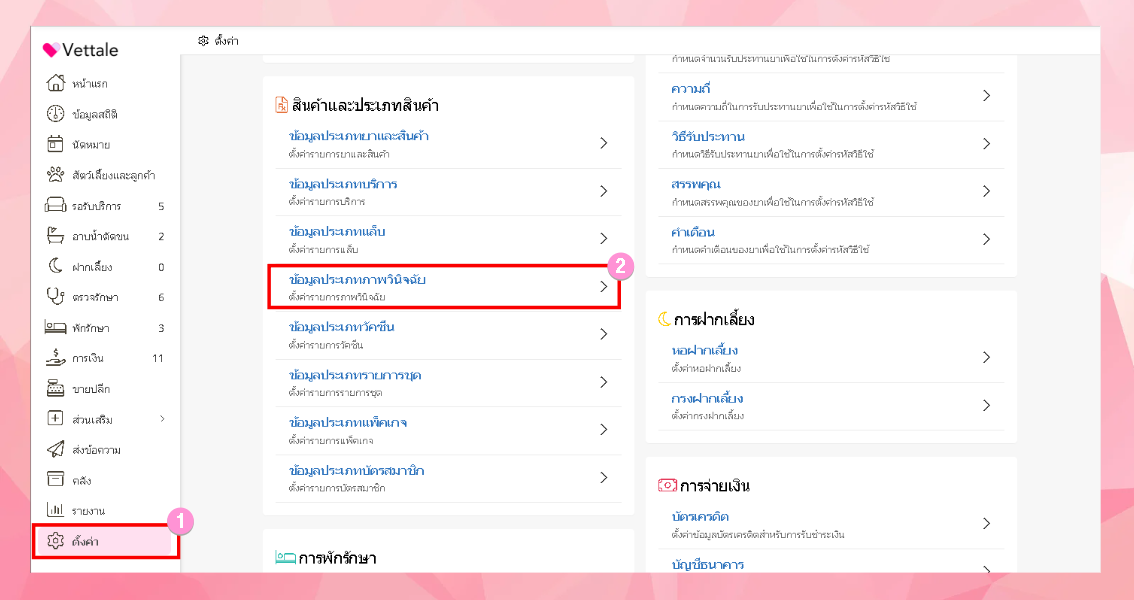 ในการตั้งค่าข้อมูลประเภทภาพวินิจฉัย ทำได้โดยการไปที่เมนูตั้งค่า > ข้อมูลประเภทภาพวินิจฉัย
