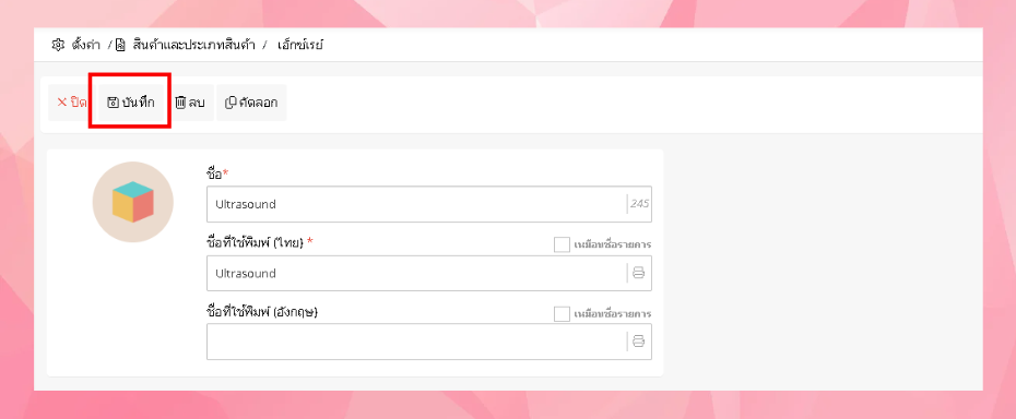 - เมื่อผู้ใช้งาน กรอกข้อมูลเรียบร้อยแล้วคลิกปุ่ม "บันทึก"