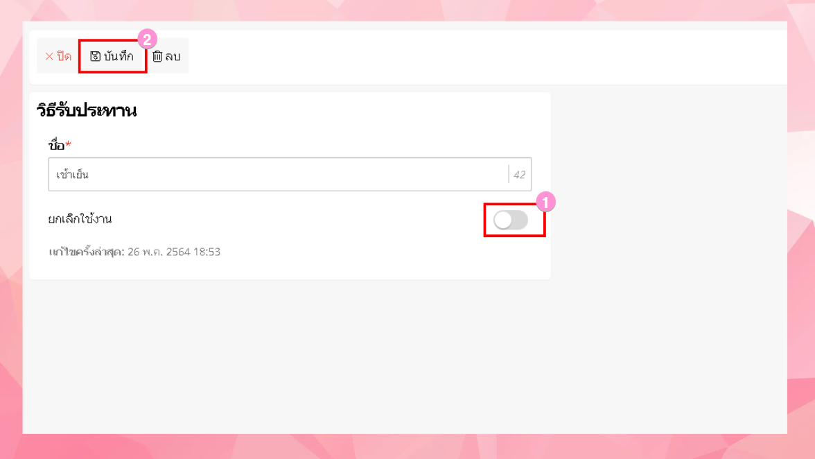ผู้ใช้งานสามารถเลือกเปิดปิดการยกเลิกการใช้งานได้ (หากยกเลิกแล้วระบบจะไม่ใช้งานข้อมูลที่ยกเลิกไป)