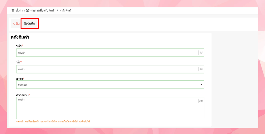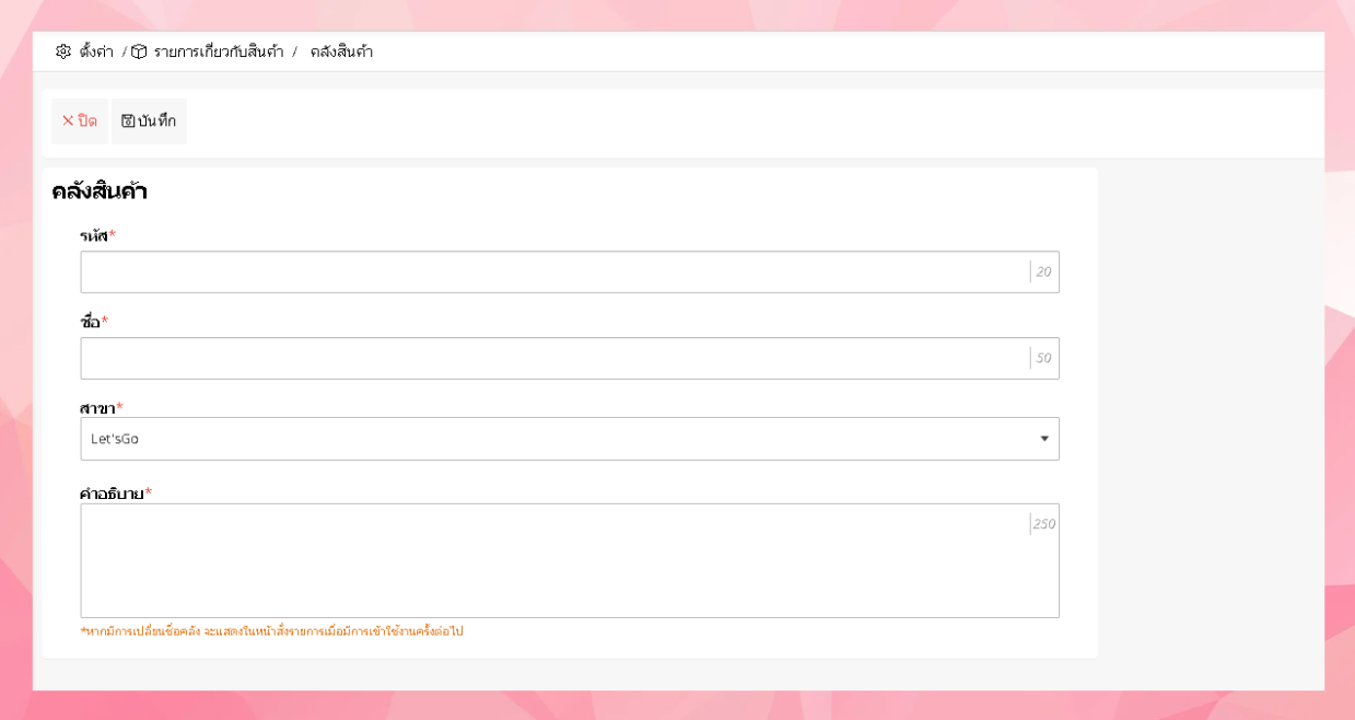 - ระบบจะเข้าสู่หน้าเพิ่มคลังสินค้า