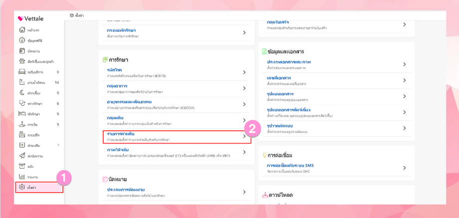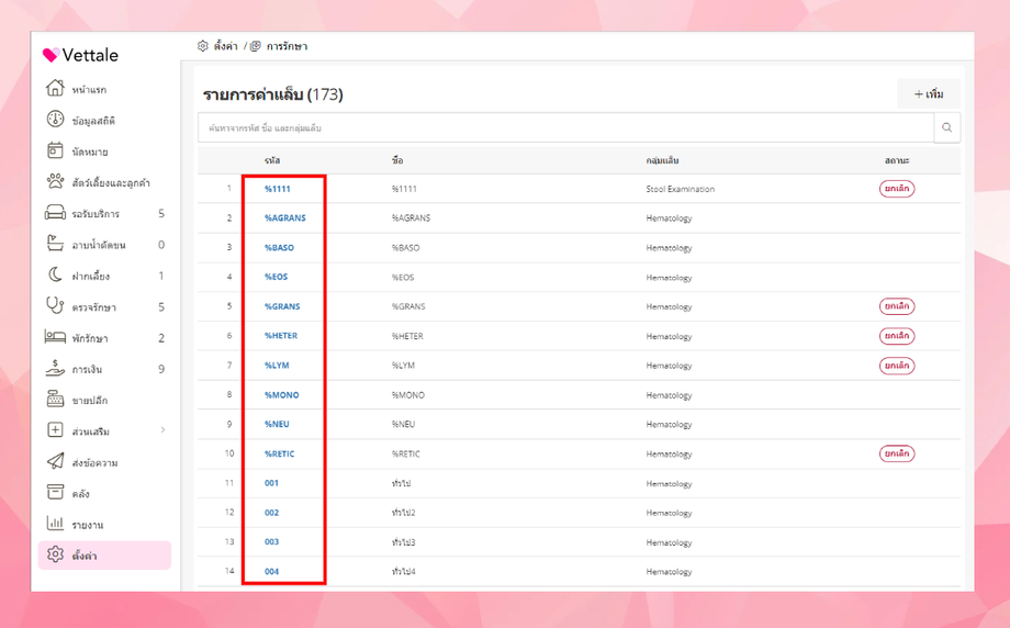 ไปที่ตั้งค่า > เมนูการรักษา > รายการค่าแล็บ