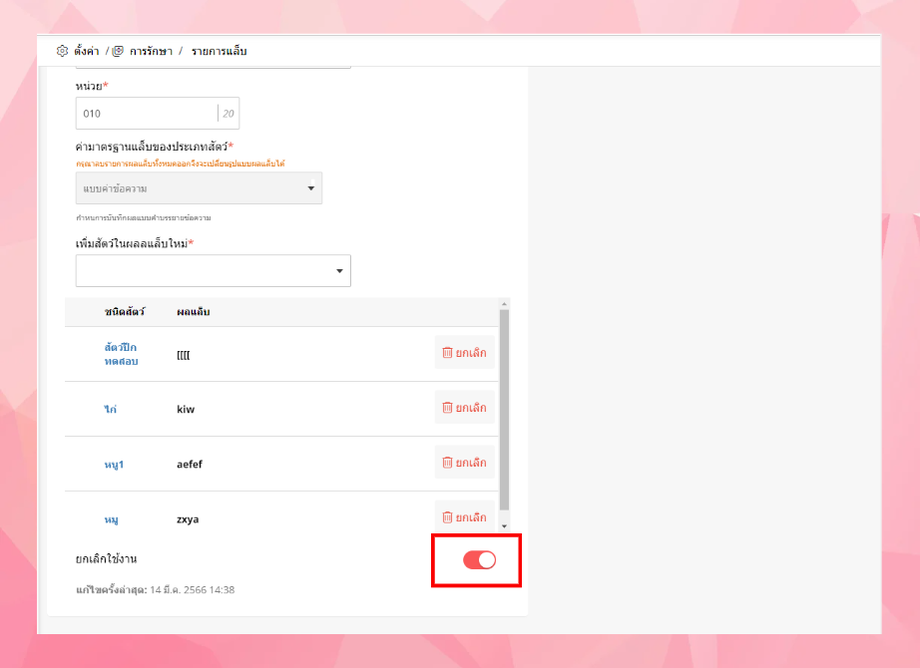 เลือกเปิดการยกเลิกใช้งาน (หากยกเลิกแล้วระบบจะไม่ใช้งานข้อมูลที่ยกเลิกไป)