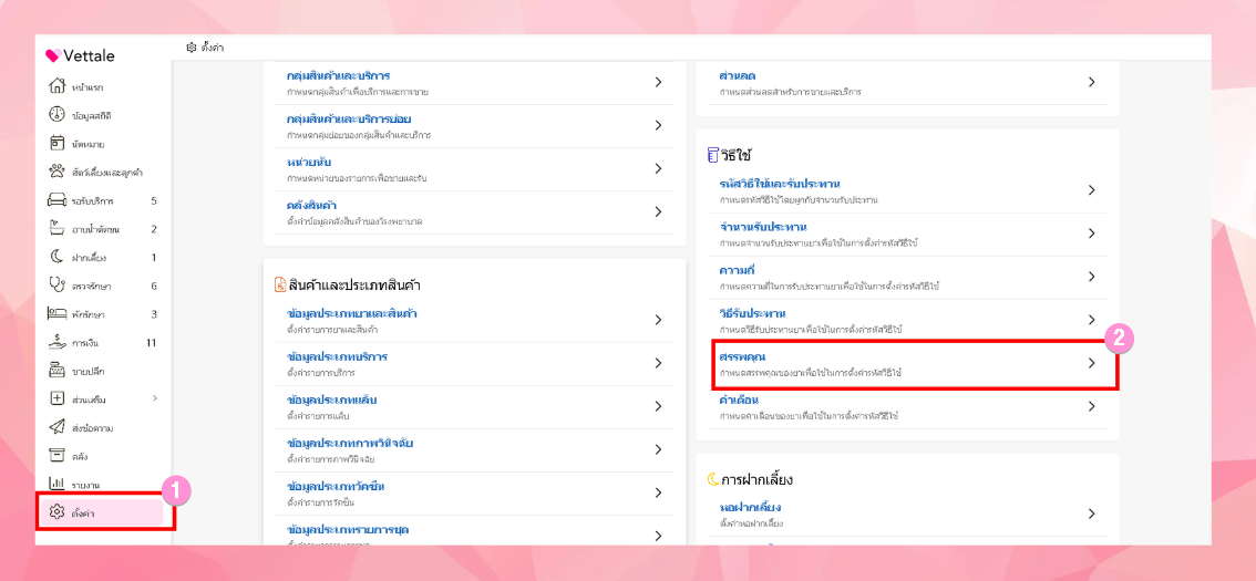 ไปที่ตั้งค่า > เมนูวิธีใช้ > สรรพคุณ
