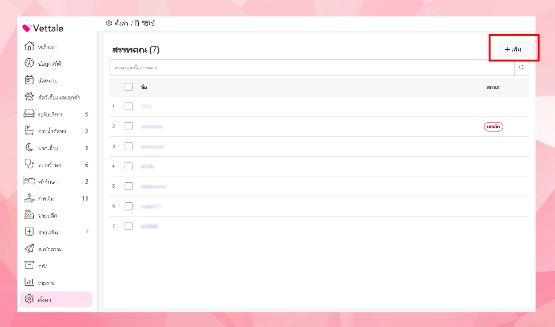 ให้ผู้ใช้คลิกปุ่ม "เพิ่ม"