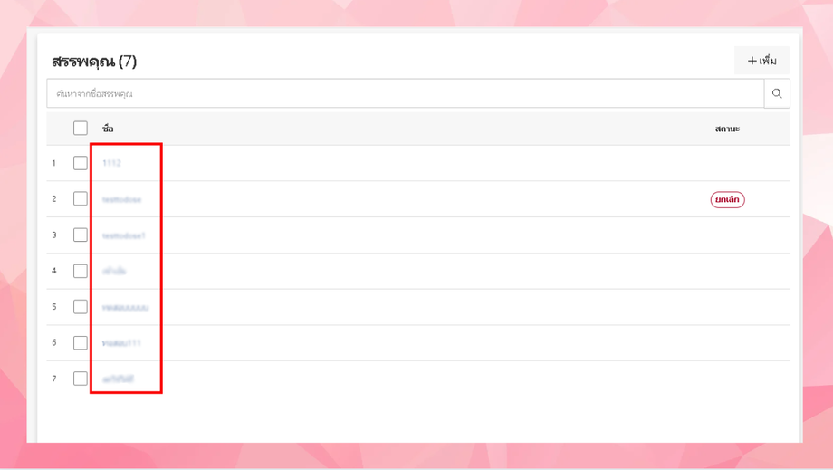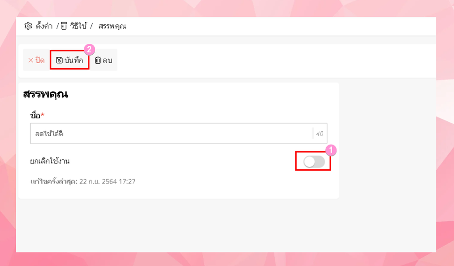 ผู้ใช้งานสามารถเลือกเปิดปิดการยกเลิกการใช้งานได้ (หากยกเลิกแล้วระบบจะไม่ใช้งานข้อมูลที่ยกเลิกไป)