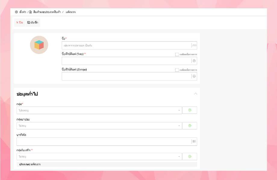 การเพิ่มข้อมูลแพ็คเกจ