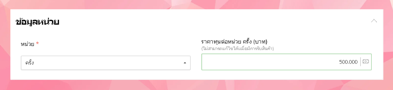 ผู้ใช้สามารถเลือกหน่วย และราคาต้นทุนต่อหน่วยได้