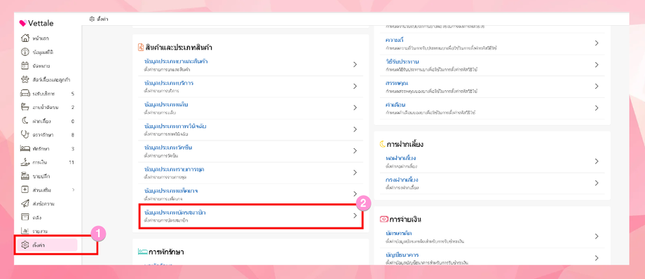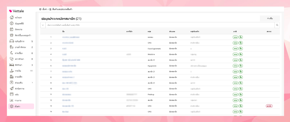ในการตั้งค่าข้อมูลประเภทบัตรสมาชิก ทำได้โดยการไปที่เมนูตั้งค่า > ข้อมูลประเภทบัตรสมาชิก