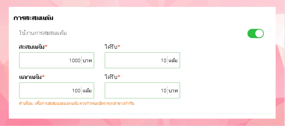 - สามารถเปิดปิดการสะสมแต้มและตั้งค่าการสะสมแต้มได้