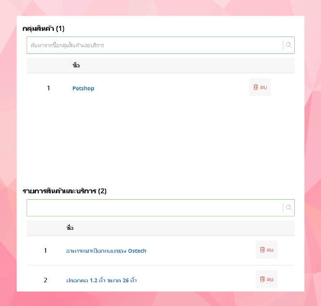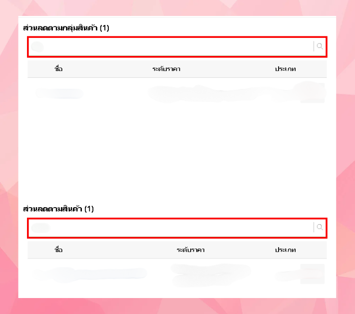 - เลือกส่วนลดตามกลุ่มสินค้าโดยการค้นหาในช่องค้นหากลุ่มสินค้าและบริการ