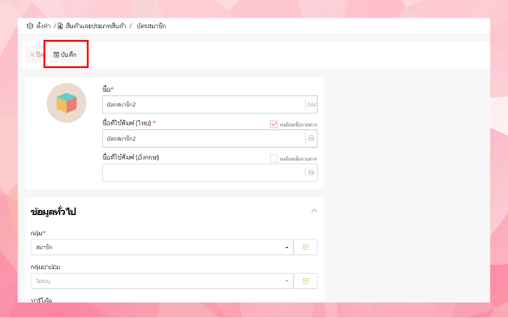 การตั้งค่าข้อมูลประเภทบัตรสมาชิก