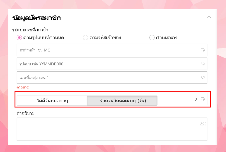 - สามารถกำหนดให้บัตรไม่มีวันหมดอายุ หรือมีจำนวนวันหมดอายุได้