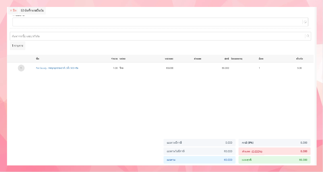 - ระบบจะแสดงสินค้า จำนวน ราคา วันหมดอายุ และล๊อต