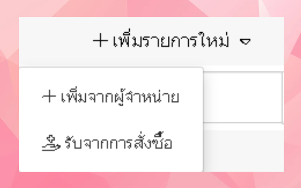 - เมื่อผู้ใช้กดปุ่มเพิ่มรายการใหม่ ระบบจะให้ผู้ใช้เลือก เพิ่มจากผู้จำหน่าย หรือ รับจากการสั่งซื้อ