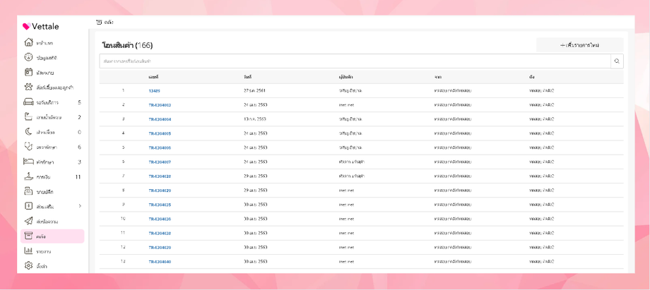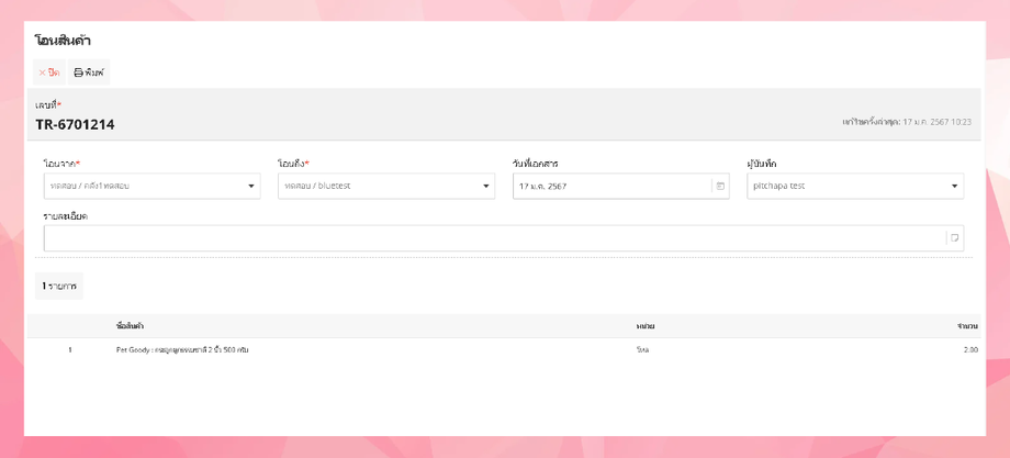 ระบบจะแสดงใบเลขที่โอนสินค้า
