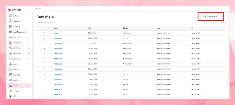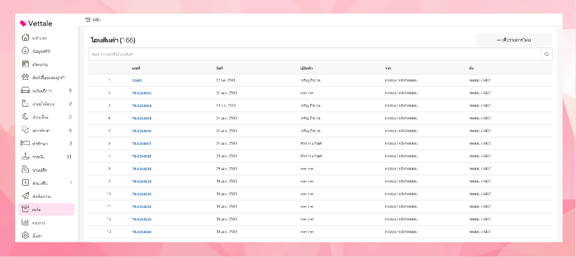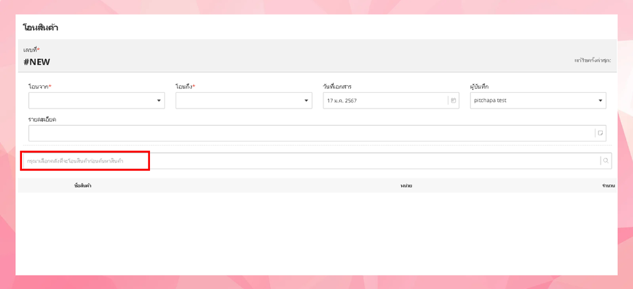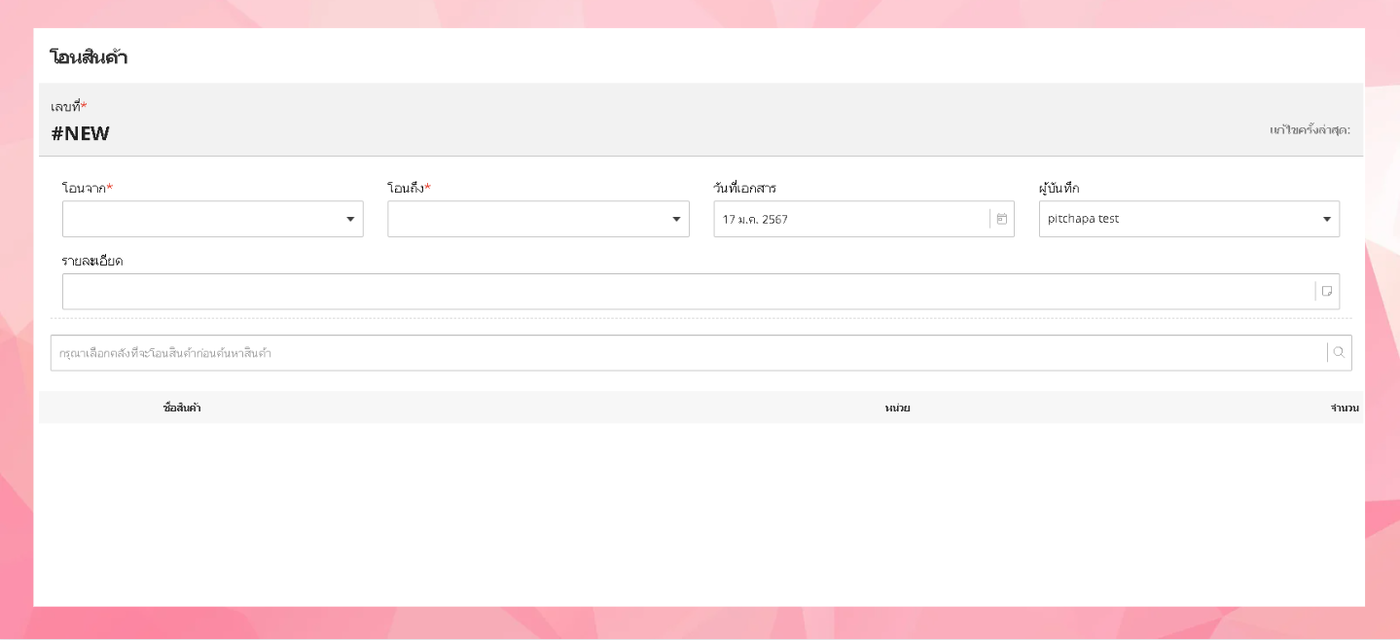 เมื่อผู้ใช้งานกดปุ่มเพิ่มรายการใหม่ ระบบจะเข้าสู้หน้าโอนสินค้า