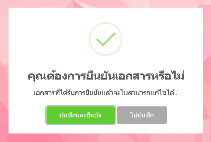 ระบบจะแสดงหน้าต่างยืนยันเอกสาร ให้ผู้ใช้งานกดปุ่มบันทึกและยืนยัน
