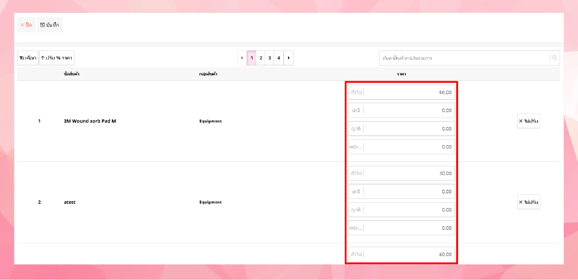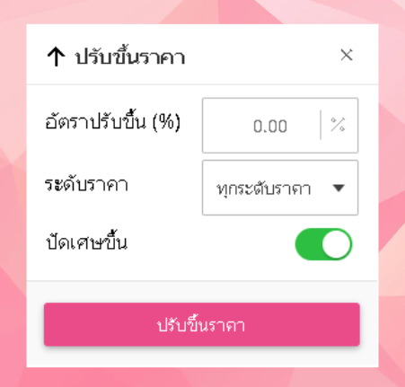 - ผู้ใช้งานสามารถปรับราคาตาม%ได้ โดยกดปุ่มปรับ%ราคา