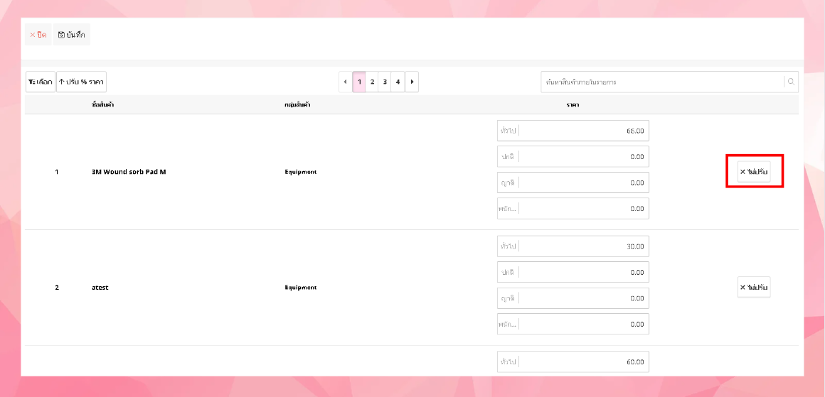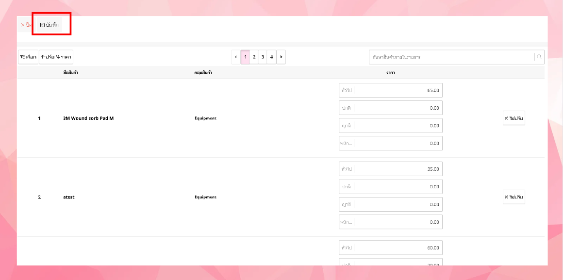 - เมื่อผู้ใช้ทำการปรับราคาสินค้าเสร็จแล้ว กดบันทึก