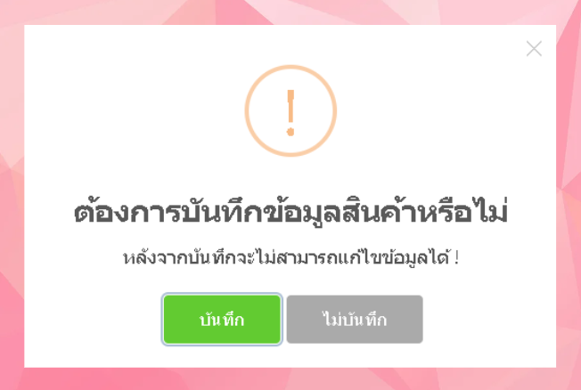 - ระบบจะแสดงหน้าต่างยืนยันการบันทึกข้อมูล ให้ผู้ใช้งานกดปุ่มบันทึก
